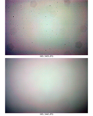 Figure 12 - Before (top) and after (bottom) cleaning examples One final example from Advance Camera is shown in Figure 13. In this case, the top image is the results of a customer attempt to clean his sensor. The bottom photo is the result after professional cleaning was performed on the sensor.
